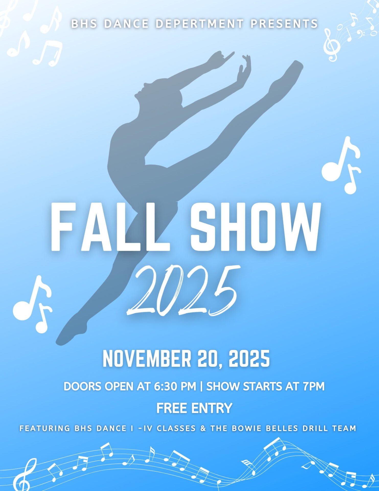 Doors open at 6:30pm, Show Starts at 7pm. Free entry. Featuring BHS Dance I-V Classes & The Bowie Belles Drill…