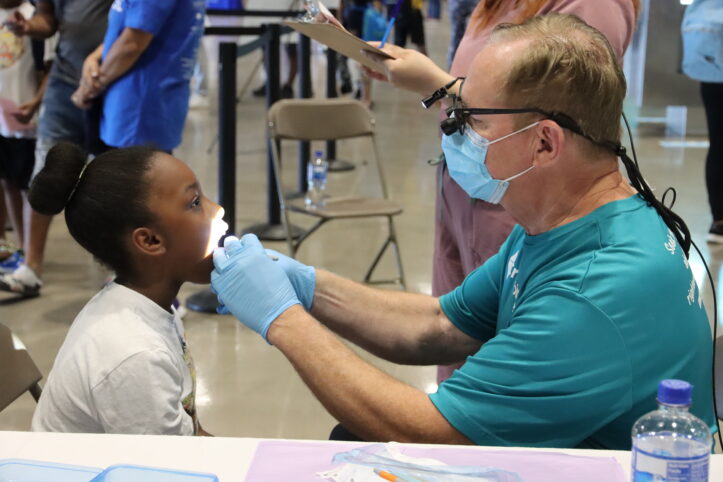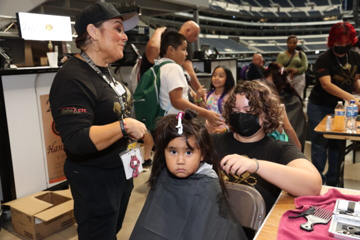The girls received backpacks and supplies and underwent dental screenings. They waited a long time to get free hair trims, but they didn’t mind. They were able to avoid the beaming sun because the styling stations were located in the stadium’s lobby.