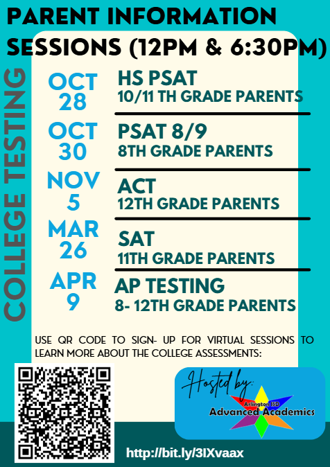 COLLEGE TESTING INFO SESSIONS FOR PARENTS