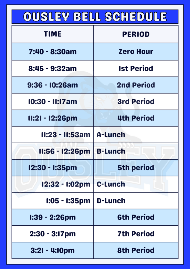 2024-2025 Ousley Bell Schedule