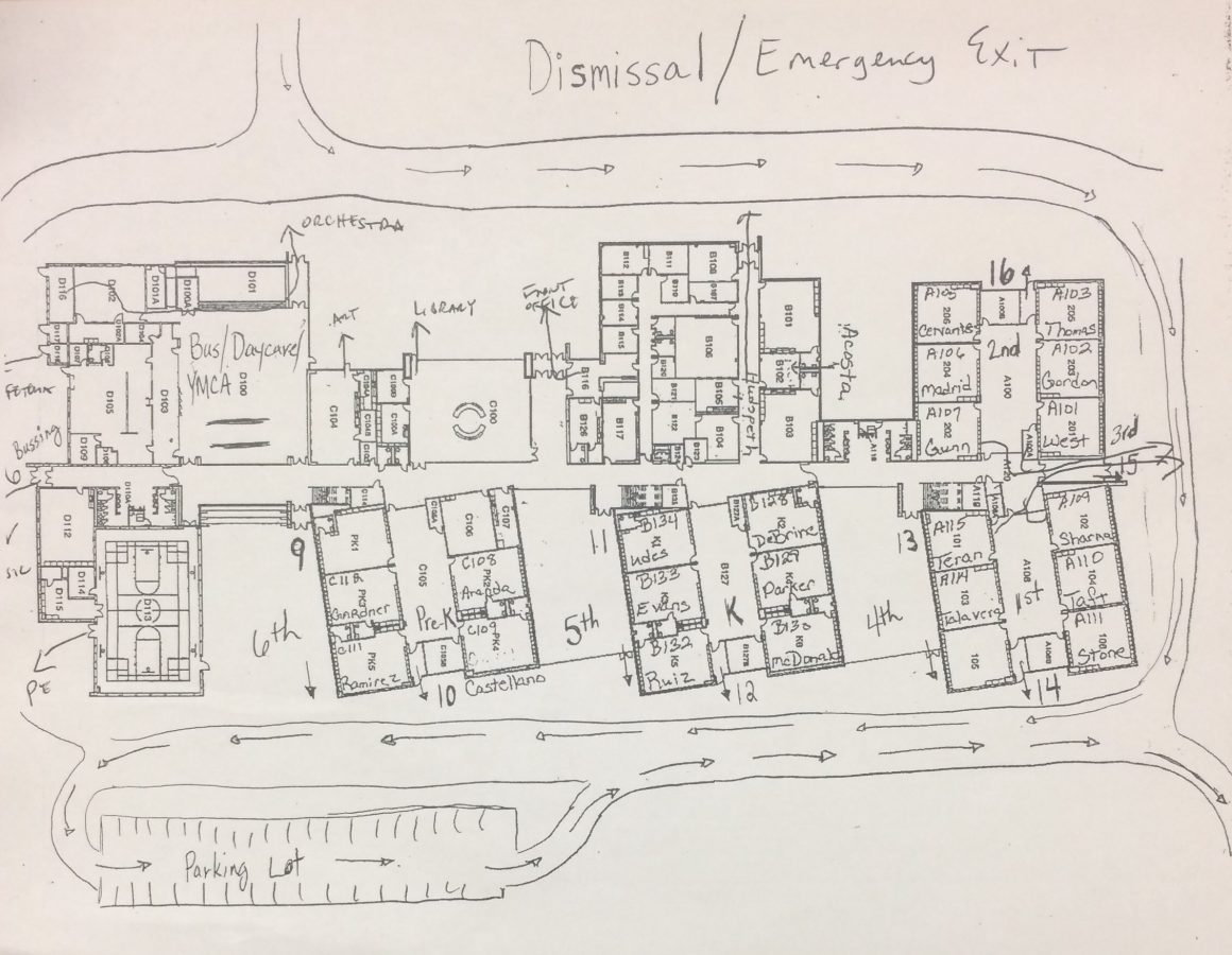 Students are dismissed at 3:35. Students in PK, Kinder, 1st and 2nd grade are dismissed from their pods. Students in 3rd, 4th, 5th and 6th grade are dismissed from the gated garden areas outside.