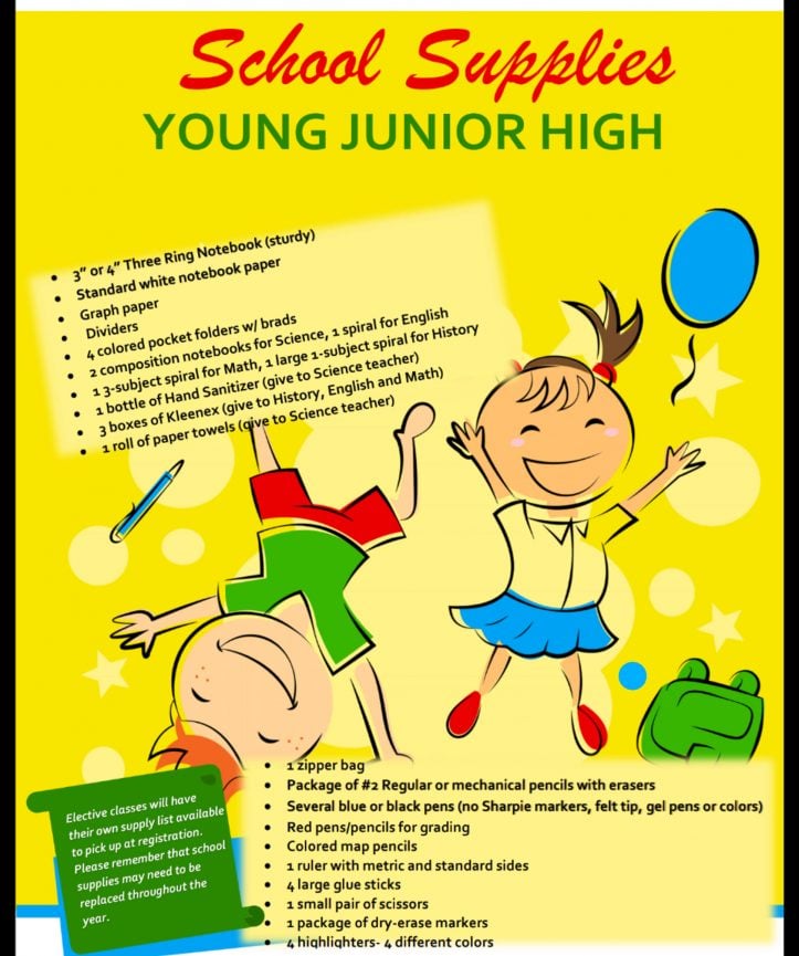 -Plastic pocket folder with brads -1 zipper pouch -1 12 pack of pencils -1 hand held sharpener with compartment to collect shavings -1 package of washable markers -1 package of colored pencils -1 package of erasers -1 rubber ruler -1 package of glue sticks -Scissors -2 Black Sharpies: 1 fine point, 1 ultra-fine point (Sharpies are not permitted on campus outside of the art room, and may result in corrective actions if found elsewhere. Sharpies must be left with the teacher) -Advanced Art only - Sketchbook about 8.5" x 11" in size suggest but not required